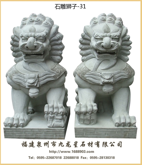 就是用石頭雕刻出來的獅子,是在中國傳統(tǒng)建筑中經(jīng)常使用的一種裝飾物。在中國的宮殿,寺廟,佛塔,橋梁,府邸,園林,陵墓,以及印鈕上都會(huì)看到它。但是更多的時(shí)候,“石獅”是專門指放在大門左右兩側(cè)的一對(duì)獅子。石獅不僅有不同的時(shí)代特點(diǎn),還有明顯的地域特色??傮w上,北方的石獅子外觀大氣,雕琢質(zhì)樸;南方的石獅更為靈氣,造型活潑,雕飾繁多,小獅子也不僅在母獅手掌下,有的爬上獅背,活潑可愛。