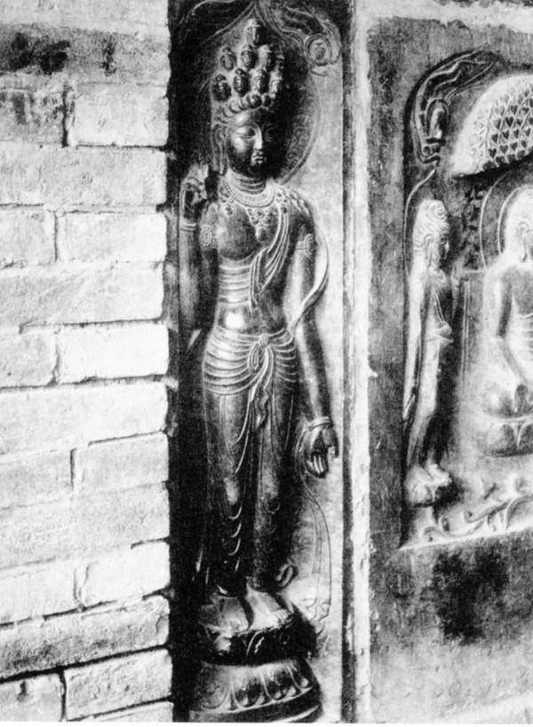 《國(guó)華》中的七寶臺(tái)唐代雕塑照片,定年703。圖片來源:Stanley K. Abe, “From Stone to Sculpture”, p.12.