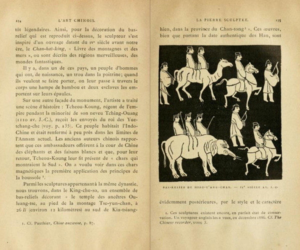 Paléologue《中國(guó)藝術(shù)》一書中的孝堂山拓片插圖。圖片來源:Paléologue, Maurice, “La Pierre Sculptée”, L'art chinois, 1887 (Paris : Maison Quantin), pp.134-135.