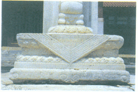 以龍鳳為題材的坊心彩畫與石雕牌坊柱子的抖向支撐構件。通常石雕牌坊采用,可抵御強風,避免傾倒。