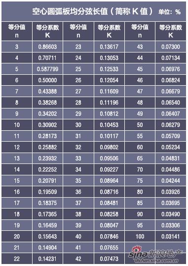 下面“圓均分弦長系數(shù)”K值表或許能夠給你帶來方便(如下圖):
