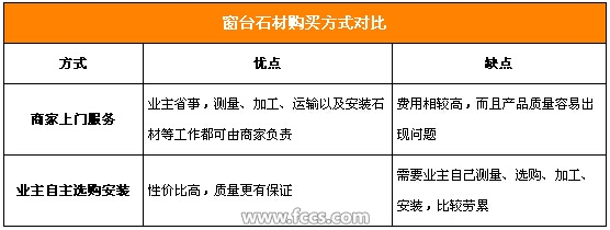窗臺石材的購買方式有兩種,一種是選擇讓商家上門服務(wù),一種是自己去石材市場挑選加工,然后運(yùn)回來自己或請人安裝,兩種方式各有利弊。