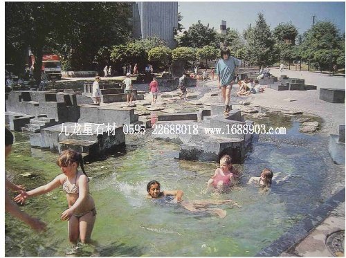 約阿希姆.施梅托在柏林市中心的設計也是一個給人留下深刻印象的作品。他利用高程的變化,造成空間形體的豐富變化,而且還形成多種形式的水體造型,將塑造的、建筑的、環(huán)境的以及自然的復雜要素揉合在一起。他對造型的設計、符號的運用、材質(zhì)的駕馭都別出心裁,足以令人流連忘返。