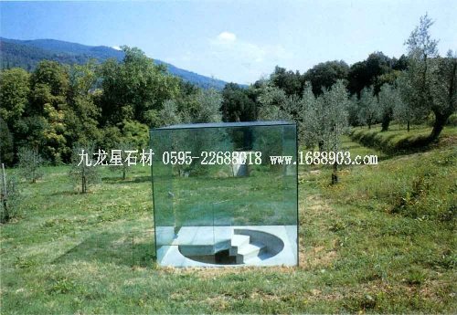 雕塑景觀的樂趣還在表現(xiàn)方式的不同,同時歷史和文化差異也給作品帶來獨特的魅力。如井上武吉在高利收藏園創(chuàng)作的作品,從神社祭祀活動受到啟發(fā),它采用了線、下沉的面、通道以及玻璃材質(zhì)的圍合等對自然空間限定的方式,造成了一個可以穿行的神秘的景觀作品。將黑暗與光明、神圣與離奇貫穿其中。當人們游行而過時,會獲得一種解脫與再生的神奇體驗。