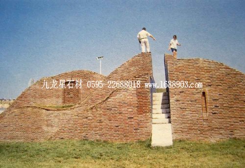 如果說奧克.德弗里斯在鹿特丹的那件作品像一支漫不經(jīng)心的童謠,綿延幾百米,不斷地帶給路人驚喜的話,亞歷山大.阿爾吉拉在馬德里郊外的那件作品似乎更為離奇。第一次見到它的人無不以為是紅磚外墻的公廁,用臺階分成男左女右兩部分。走近才發(fā)現(xiàn)是一座與周圍草地連在一起的雕塑作品,當?shù)氐哪嗤帘粔痉e起來夯實成鋪滿草皮的波狀斜坡。從另一個角度看,仿佛原來就生長在那里奇妙的土堆。大人完全可以放任小孩子們在那里騎自行車沖“浪”,或玩其它游戲。