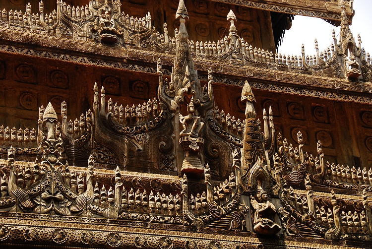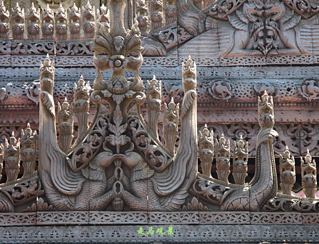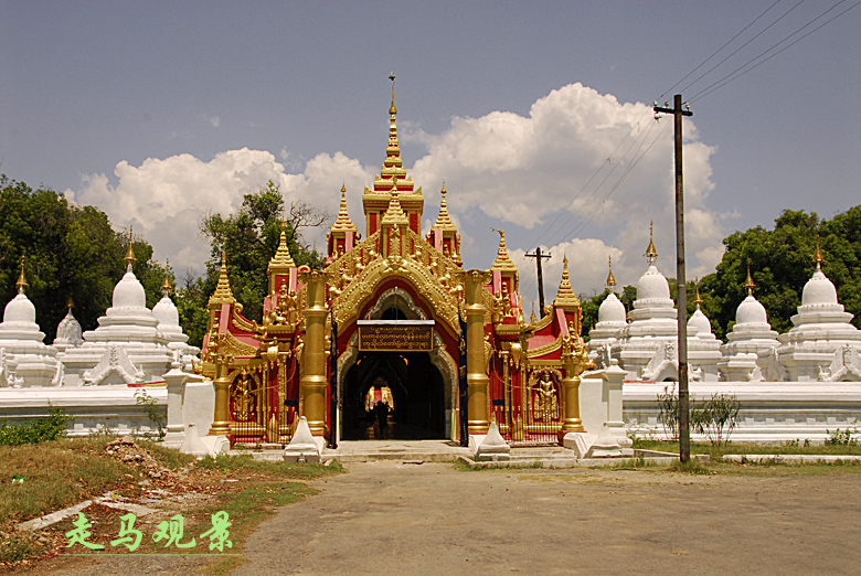 阿都瑪希寺的大門,由白色大理石經(jīng)書圍繞著金光四射的寺廟大門。在修建廟宇的問題上,緬甸人是毫不吝嗇的。為什么人們會說緬甸是富饒中的貧困,原因也許就在此。緬甸人將一生的很多時光和財富都貢獻(xiàn)給了佛。