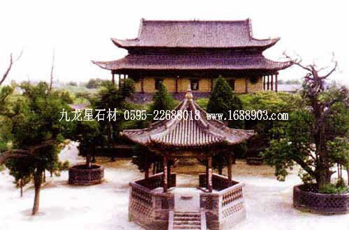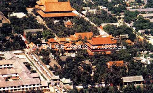 孔廟位于山東省曲阜市南門內(nèi),是歷代祭祀孔子的廟宇,建筑規(guī)模宏大,雄偉壯麗。其平面呈長方形,總面積327.5畝,南北長1120米。整個孔廟的建筑群以中軸線貫穿,左右對稱,布局嚴(yán)謹,共有九進院落。全廟共有五殿、一祠、一閣、一壇、兩堂、十七碑亭、五十三門坊,共計有殿廡四百六十六間??讖R內(nèi)最為著名的建筑有:欞星門、二門、奎文閣、杏壇、大成殿、寢殿、圣跡堂、詩禮堂等。杏壇,傳為孔子講學(xué)處,壇旁一株古檜,稱“先師手植檜”;大成殿為孔廟的主殿,殿內(nèi)正中奉祀孔子塑像,兩旁為4配和12哲的塑像;東西廡殿原供孔子弟子及儒家歷代先賢;故宅井后的“魯壁”為秦始皇焚書坑儒時,孔子第九代孫孔鮒收藏《尚書》、《禮記》、《論語》、《孝經(jīng)》等書的夾墻??讖R與孔府、孔林并稱“三孔”,是中國現(xiàn)存最大的四大古建筑群之一。