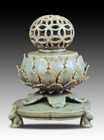 青瓷透雕七寶香爐 12世紀(jì) 通高15.3厘米 首爾國(guó)立中央博物館藏]