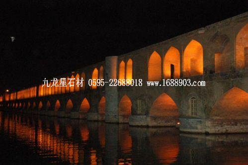 赫久古橋是伊朗最著名的橋梁之一,阿拔斯二世在1650年一座更古老的橋梁基礎(chǔ)上建造的,它共有23個(gè)拱形結(jié)構(gòu),總長(zhǎng)度344英尺,45英尺寬。