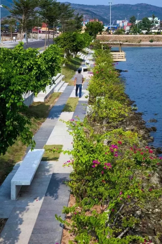 十年前,這里是漁夫們躲避風(fēng)暴的碼頭,之后漸漸變成貧民聚集區(qū),由于各類污水直接排入湖中,導(dǎo)致該區(qū)域整體環(huán)境質(zhì)量下降。設(shè)計(jì)師首先增設(shè)了下水道系統(tǒng),將堤岸延伸至湖中形成一個(gè)緩沖帶,湖邊有步行道,為居民及游客在湖邊提供了優(yōu)美的駐足游賞空間。