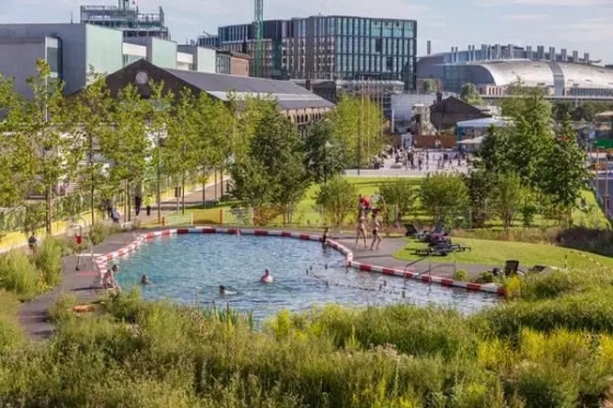 有時(shí),設(shè)計(jì)意圖比作品顯現(xiàn)出的形式更為重要,這個(gè)公園便是如此。該裝置項(xiàng)目意在引導(dǎo)人們思考自然與變化的城市環(huán)境間的關(guān)系。在設(shè)計(jì)師們看來(lái),當(dāng)公園被圍繞在相對(duì)永久的建筑物中時(shí),這些待開發(fā)的空間卻在持續(xù)的變化中。因此,他們?cè)趪?guó)王十字街修建了一座泳池,吸引著人們?nèi)秤巍?/p>