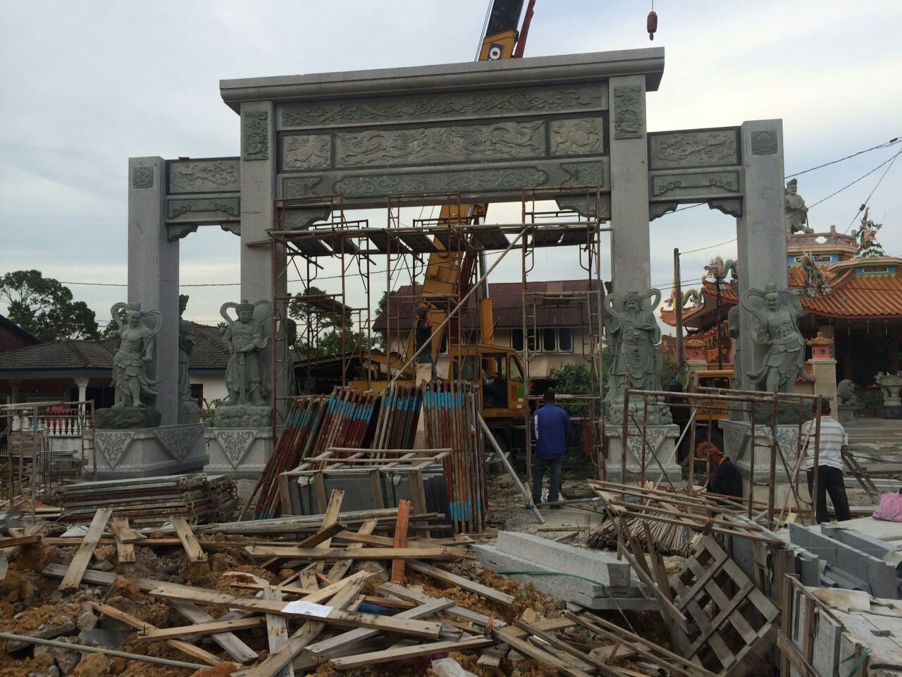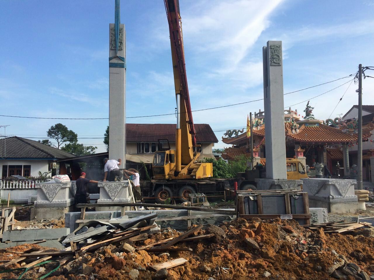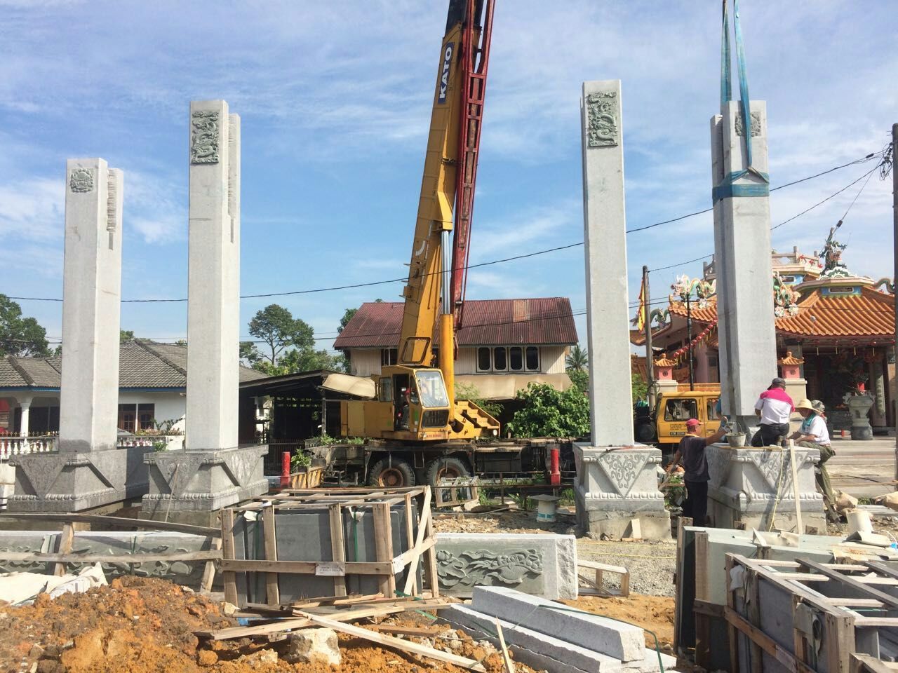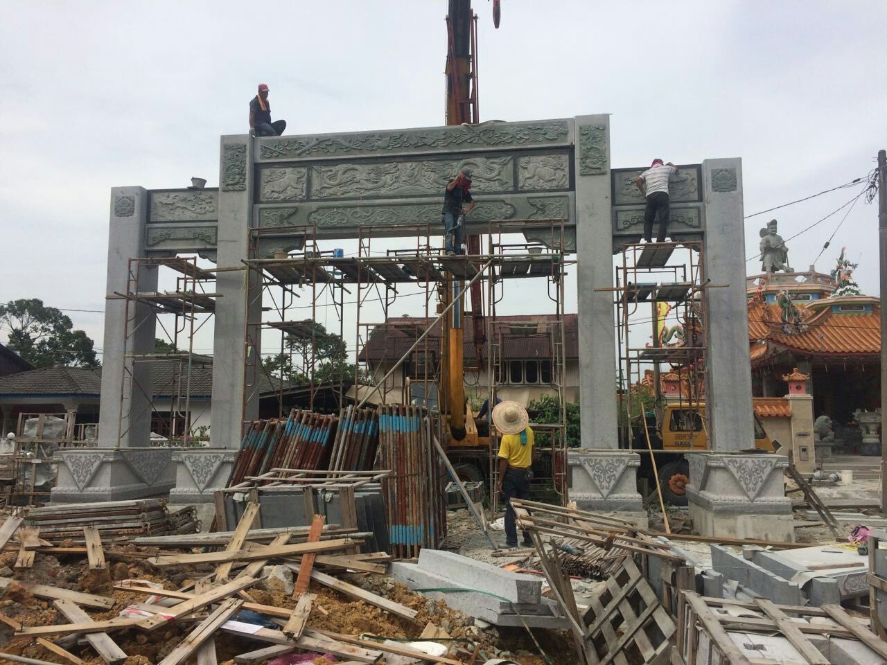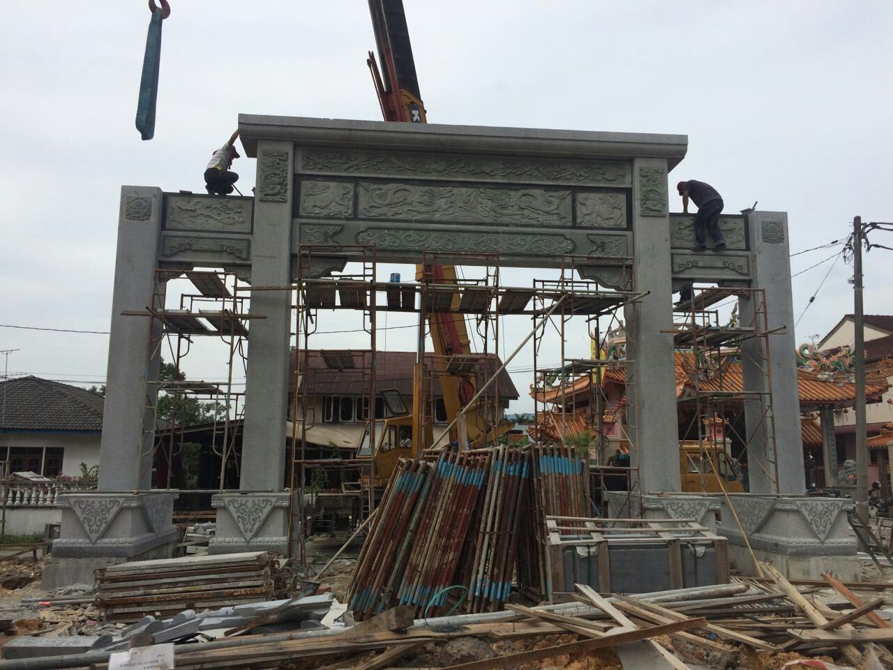 本公司的石雕牌坊(馬來(lái)西亞客戶)安裝中