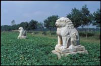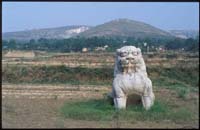 從上述天人合一的認識出發(fā),中國古代墓葬傳統(tǒng)從漢代起產生廠“因山為陵”、”依山為陵”、山水擇地、 自然景觀與人文景現(xiàn)有機結合、同時考慮到方位、朝夕、陰晴的美感變化等一系列景觀追求。這種追求具有相當深刻的美學意義。就陵園石雕藝術而言,則提供了充分的環(huán)境審美層次,唐陵石雕以完善的形式體現(xiàn)著這外觀念,宋陵、明陵、清陵石雕均繼承了這一傳統(tǒng)并不斷予以發(fā)展。