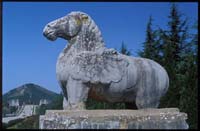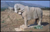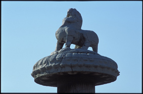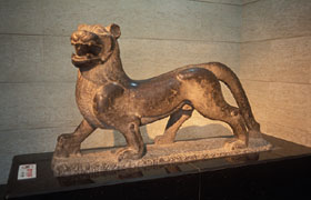 藏王墓位于西藏自治區(qū)瓊結縣,是公元七——九世紀歷代吐蕃贊普的墓葬群,現(xiàn)存石獅一對和石碑、柱等。造型除受中原影響外,樣式特征亦帶有波斯風格影響。