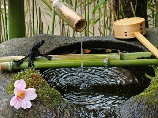 洗手缽和蹲踞是日本茶庭中的必備用品。高的稱洗手缽,矮的稱蹲踞。在茶會之時(shí),茶客在進(jìn)入茶室之前,在經(jīng)過茶庭的時(shí)候,就必須在洗手缽或蹲踞前先洗手和漱口,以達(dá)清凈身心的目的。洗手的順序是從主人開始,依貴賤先后進(jìn)行。