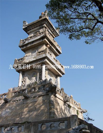 普濟寺東側(cè)有座普陀山鎮(zhèn)山之寶的多寶塔,又名太子塔。此塔建于元朝,呈方形,高約18米,雙層塔座,三層塔身,共五層。此塔與龍文化有關(guān)的是在基座的四周欄下雕著龍首二十只,張口作吐水狀。雨天時,雨水自龍口流溢,如龍垂液,頗為奇巧。