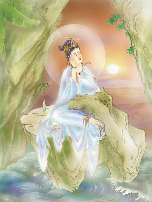 六、白衣觀音 大慈白衣觀世音 隨緣赴感應(yīng)群機(jī) 三昧辯才善誘誨 妙德圓成證菩提