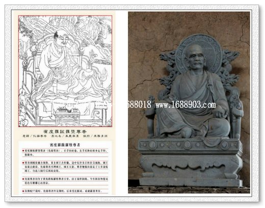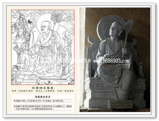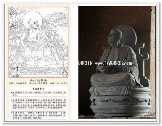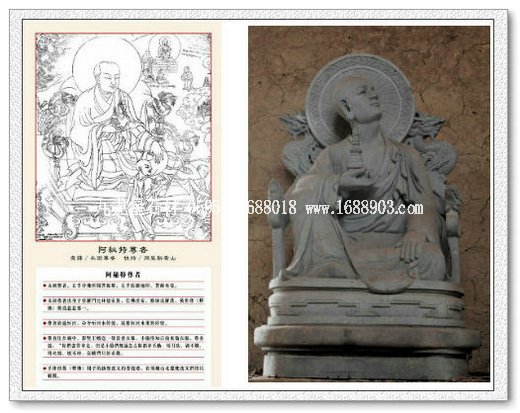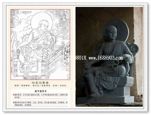 這些由兩米多高整塊青石雕刻的十八尊羅漢單人像,是尊貴的嘎瑪仁波切依據(jù)德格印經(jīng)院的木刻稿本,請福建世代為宮廷雕刻的匠師雕刻的。為此嘎瑪仁波切曾數(shù)十次親自到福建的工場,指導匠師們依據(jù)藏地的風格來雕刻,慢慢調(diào)教工匠的習慣和造型的漢藏差異。欣賞的這些已完成,與漢地羅漢風格迥異的羅漢像,你會發(fā)現(xiàn)與漢地羅漢相比,藏地的羅漢形象沒有被金剛化。因為羅漢都是長老級別的,年歲最大,資歷最老的和尚,才被尊為羅漢。這些羅漢形象更寂靜調(diào)柔。內(nèi)在的修為,在頭部五官神態(tài)精妙地刻劃中,濃濃淡淡隨著光影空氣的顫動,立體地顯露出來?;驅幧癯良?或幽思默然,或目視遠方,或瞇眼看著你,神態(tài)內(nèi)斂,表情微妙。眉眼、嘴角的線條中蘊含著慈悲、包容、澹然的氣息,仿佛有生命一樣令人感動。一尊一尊,或國王、或菩薩、或英雄、或盤腿的坐姿,以各種手勢,或持物端坐于法座上,這些細節(jié)完全與漢地風格不同。十八尊藏式羅漢的雕刻技藝和藝術表現(xiàn)力,完全可以說是現(xiàn)今中國石雕羅漢像的最高成就,絕無僅有。