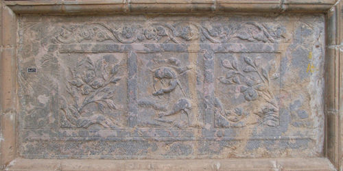 這批石供桌的雕飾,圖案有人物、動物與花卉,或整體構(gòu)圖,或分區(qū)構(gòu)圖。雕刻手法基本為浮雕與陰刻線相結(jié)合。其中8件有紀年款識,為我們了解其時代工藝特征有重要的參考價值。