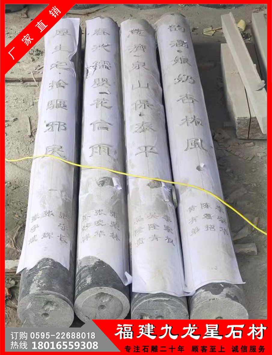 人類沒有任何一種重要的思想不被建筑藝術(shù)寫在石頭上。當我們想起過去的偉大發(fā)明時,我們有一種習慣,就是應(yīng)用看得見,有紀念性的建筑作為每個文明獨特的象征。福建泉州市九龍星石材有限公司成立于2009年3月份成立,坐落于著名的“中國石雕之都”福建省惠安縣,是一家集研究創(chuàng)作、生產(chǎn)加工、安裝、銷售于一體的石材石雕專業(yè)生產(chǎn)型企業(yè)廠家。本公司秉承品質(zhì)第一,工藝第一,服務(wù)第一的經(jīng)營理念,雕刻的產(chǎn)品能更好的呈現(xiàn)在你眼前。誠信是我們一直以來的目標,我們一直把誠信放在第一! 本公司提供簡單的石雕柱子批發(fā),歡迎來電。