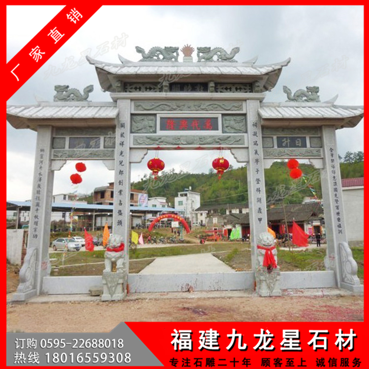 石牌坊定做一般都是選用青色或茶色的石料,上面雕刻最多、也。最為精彩的地方要數(shù)明間牌坊的中間大門的橫梁。在牌坊的石雕貔貅麒麟等飾物形式,現(xiàn)在大多是以美的形式展現(xiàn)在我們面前,給人以美感。因此,它對現(xiàn)代藝術(shù)設(shè)計(jì),對現(xiàn)代生活的審美內(nèi)容都產(chǎn)生了巨大的影響,構(gòu)成一種新的文化現(xiàn)象,即民族民間文化以獨(dú)特的形式內(nèi)容滲透到高度發(fā)達(dá)的現(xiàn)代文明中。