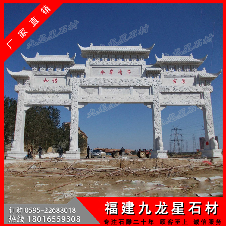 在我們的生活當(dāng)中,我們不僅僅可以在景區(qū)或者是城市中看到石雕牌坊的身影,在村莊也是可以看到石雕牌坊的,而村莊的石雕牌坊基本上都是花崗巖石雕牌坊?;◢弾r石雕牌坊對(duì)于村莊的形象來說是具有很重要的意義的。