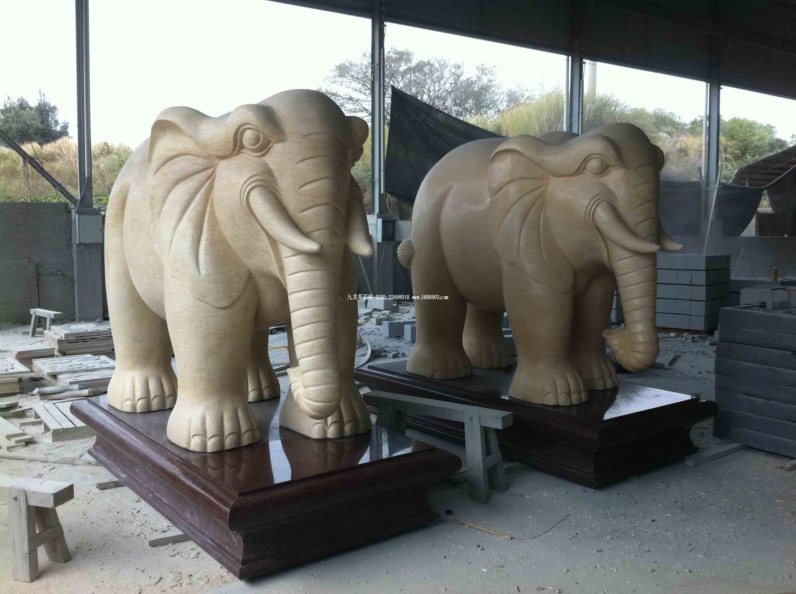 大理石大象不含踏板身高1.72米,亞洲像造型,材質為米黃系大理石。踏板所用石材為印度紅花崗巖。