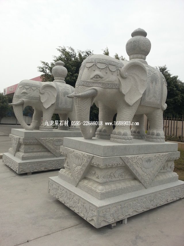 石雕大象不含基座身高1.68米,整塊花崗巖雕刻而成,背0.48米高法缽。