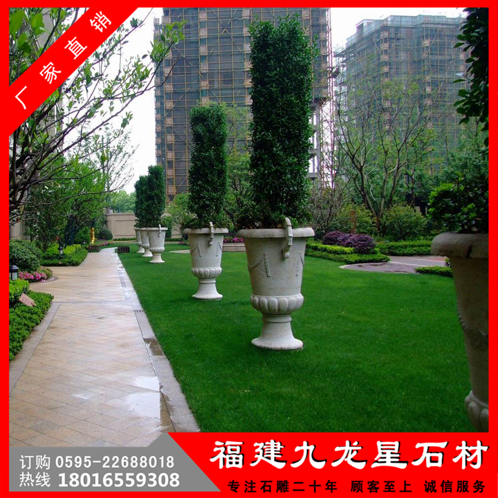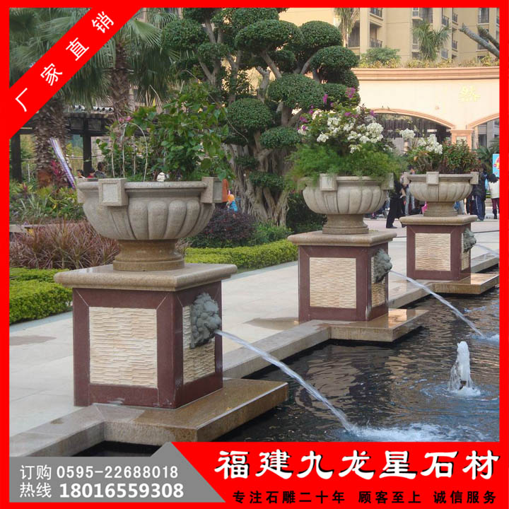 石雕花缽靈活多樣,隨處可用,尤其對于城鄉(xiāng)建筑比較密集和其他一些難于綠化地區(qū)的美化,有著特殊的意義。美化環(huán)境時,可根據(jù)缽、盆樣式、大小的不同,進行多種多樣的藝術(shù)組合。組合的形式可以是幾何式、自然式、混合式、集中布置、散置等,具體布局形式要由美化地點的具體情況決定。在較寬敞的地方,如廠前區(qū)、廣場、大型建筑門前、道路交叉口、停車場等處,可布置為樣式多變、五彩繽紛的小花壇,在商店、住宅的門前可隨機點綴一二。