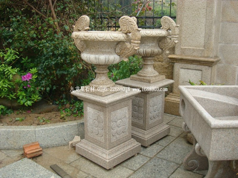 大理石石雕花缽 花崗巖石雕花缽